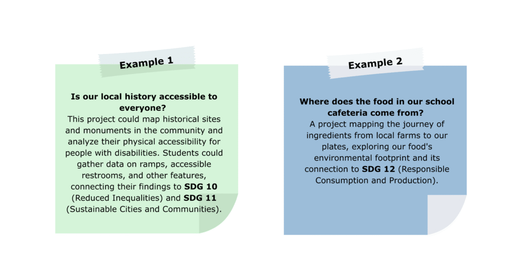 Through their participation, students will strengthen their spatial thinking and digital skills. Additionally, through experiential and inquiry-based learning processes, accompanied by awareness–raising actions organised by the schools, students will become familiar with the SDGs and gain a deeper understanding of the Goals.